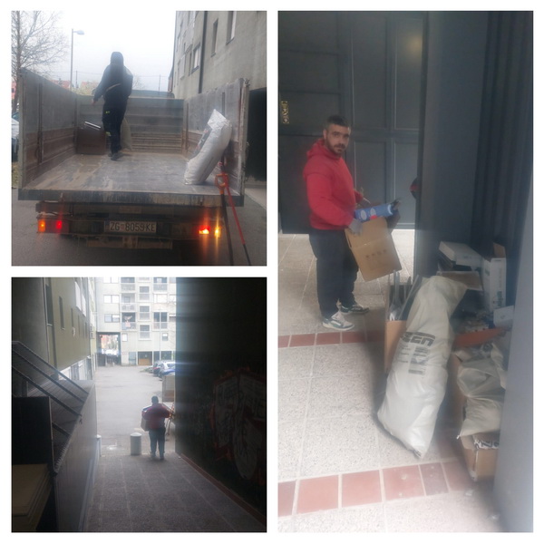 Odvoz starog parketa iz zgrade bez lifta. Zg dečke ne brine to što ova zgrada u koju smo došli po nekoliko desetaka vreća počupanog parketa nema lift. Mi se posla ne bojimo kao neke druge ekipe koje rade samo u zgradama sa liftom.
