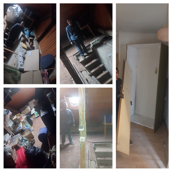 Čišćenje tavana Donja Stubica. Na ovom tavanu otpad se skupljao više godina, bio je pun od poda do stropa. Svakakvog otpada je tu bilo, od stare bijele tehnike,starog namještaja i drugog otpada. Zg dečki su metodično sve injeli sa tavana i utovarili ukombi te odvezli. Nakon nas tavan je ostao čist i